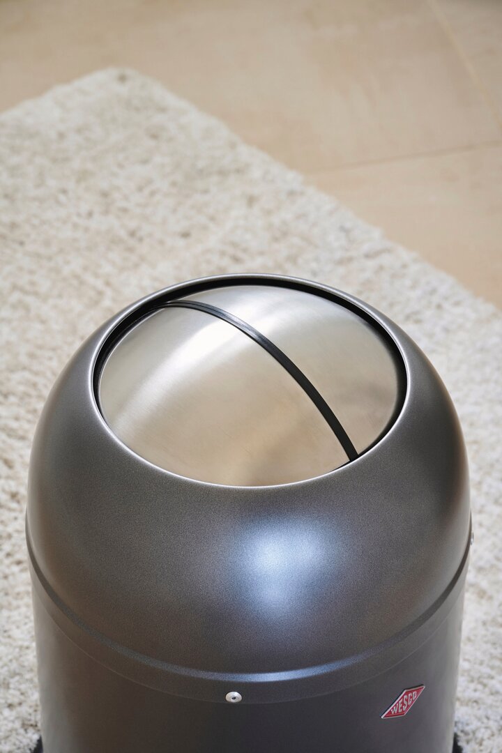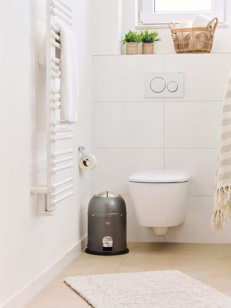 Der Müll kann hygienisch entsorgt werden, da der Deckel ohne Berührung mit der Hand mit einem einfachen Tritt auf das Pedal geöffnet werden kann. Durch die großzügige Einwurföffnung dieses Badmülleimers kann der Abfall dann bequem entsorgt werden. Die beiden Edelstahl-Halbschalen schließen durch den eingebauten Dämpfer nahezu geräuschlos und verwahren den Müll hygienisch und geruchsfrei. Der Kunststoffeinsatz ist leicht zu reinigen.