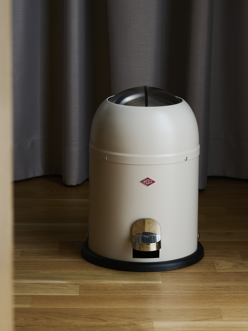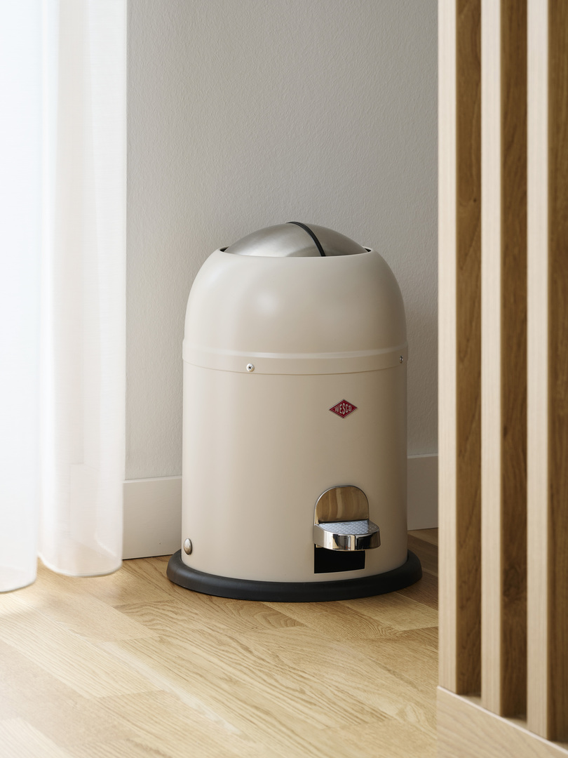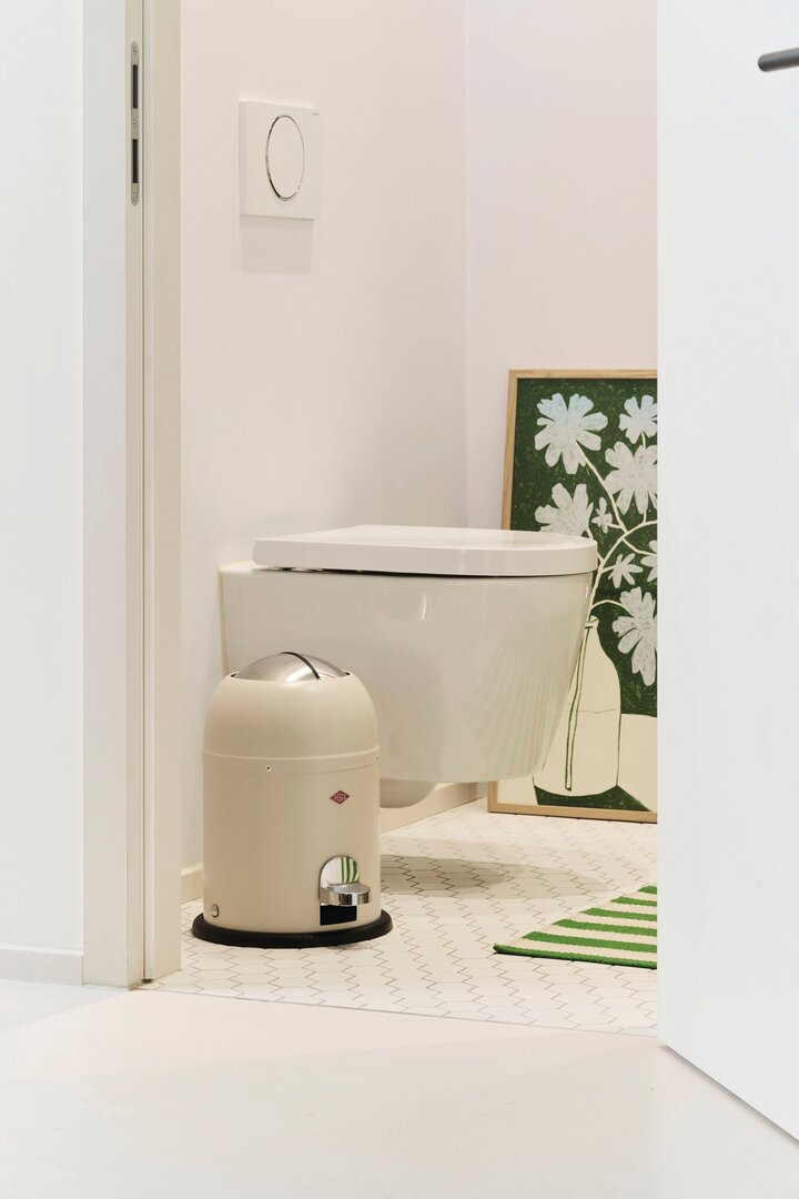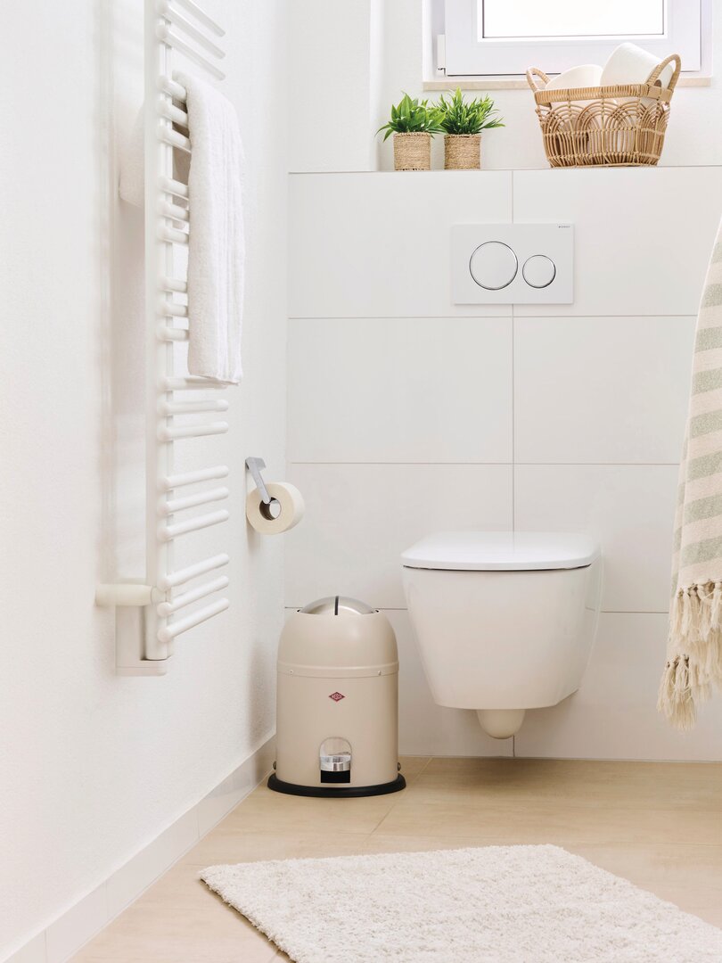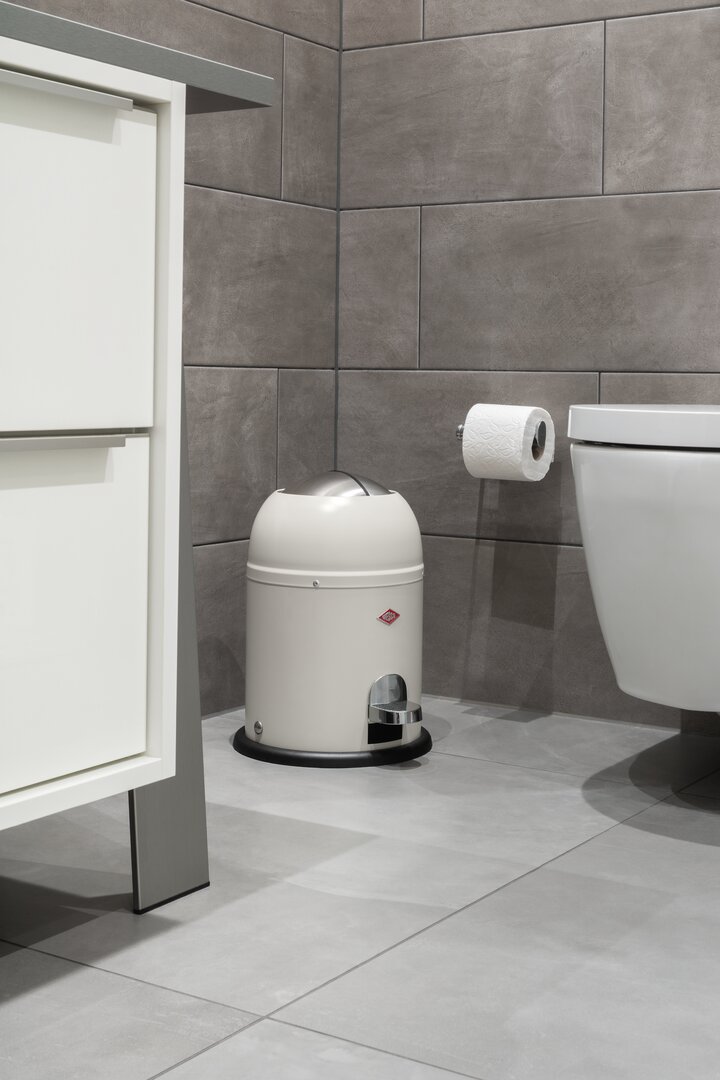Der Müll kann hygienisch entsorgt werden, da der Deckel ohne Berührung mit der Hand mit einem einfachen Tritt auf das Pedal geöffnet werden kann. Durch die großzügige Einwurföffnung dieses Badmülleimers kann der Abfall dann bequem entsorgt werden. Die beiden Edelstahl-Halbschalen schließen durch den eingebauten Dämpfer nahezu geräuschlos und verwahren den Müll hygienisch und geruchsfrei. Der Kunststoffeinsatz ist leicht zu reinigen.