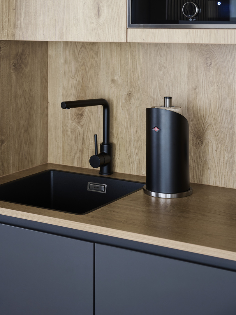 Hat Ihre Küchenpapierrolle noch keinen festen Standplatz in Ihrer Küche? Dann wird es höchste Zeit für diesen praktischen Rollenhalter im typischen Wesco-Materialmix aus Edelstahl und farbig lackiertem Stahlblech.