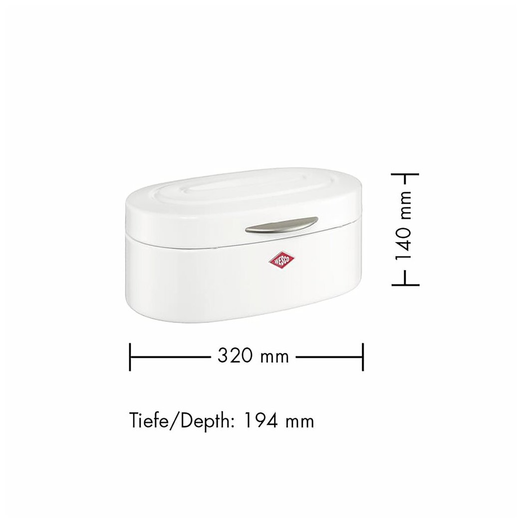 Einfach schön. Der Brotkasten Single Elly® ist ein echtes Retro-Schmuckstück, denn mit seiner ovalen Form und der dekorativen Prägung im Deckel erinnert er an Brotkästen aus den 50er Jahren. Die Brotbox ist besonders für kleinere Haushalte gut geeignet, da sie mit einer Standfläche von 32 x 19 cm nicht viel Raum auf der Arbeitsplatte einnimmt. In der Single Elly® lassen sich Brot, Brötchen, Gebäck oder Kuchen hygienisch aufbewahren. Lüftungslöcher auf der Rückseite der Brotdose sorgen für eine gute Luftzirkulation.