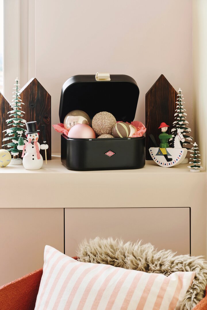 Die Lüftungslöcher auf der Rückseite sorgen für eine optimale Luftzirkulation. So bleibt der Inhalt im Brotkasten länger frisch. Der Deckel ist mit stabilen Metallscharnieren am Unterteil befestigt.