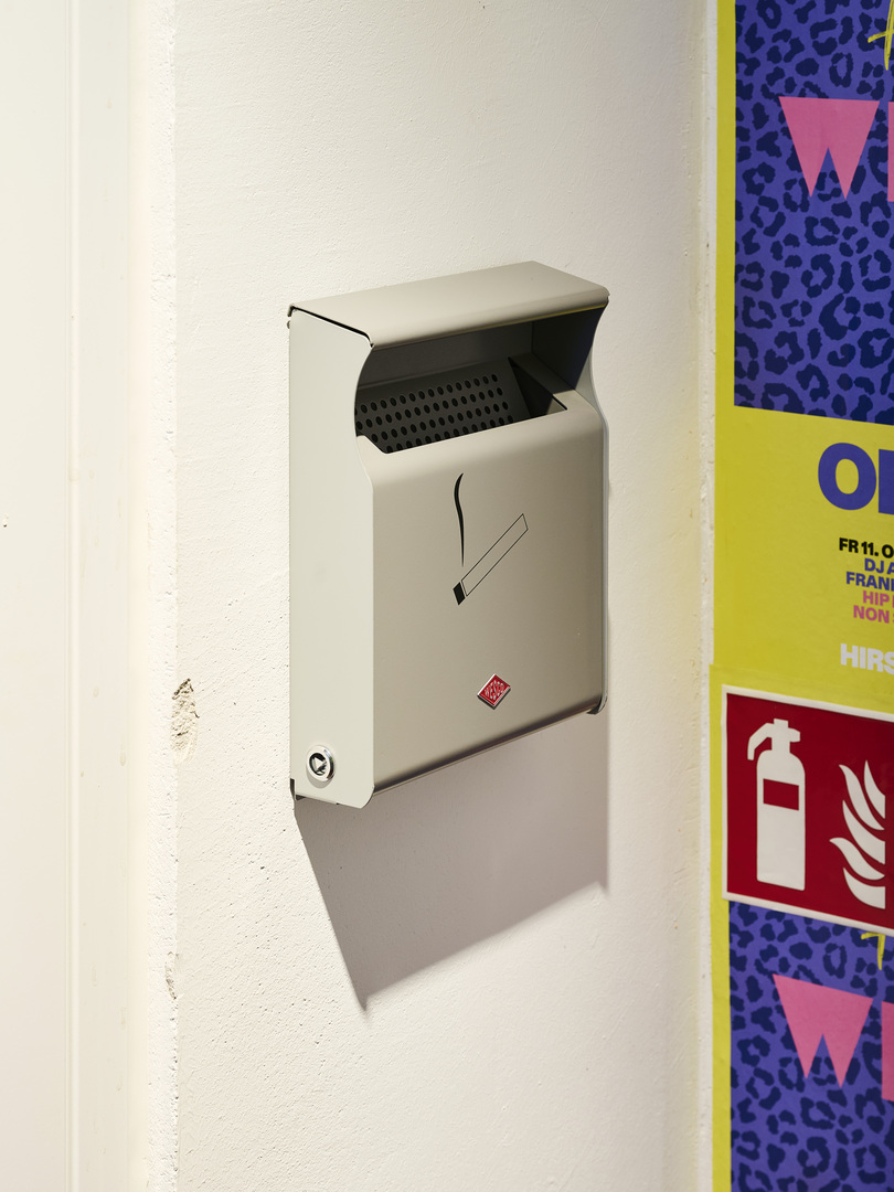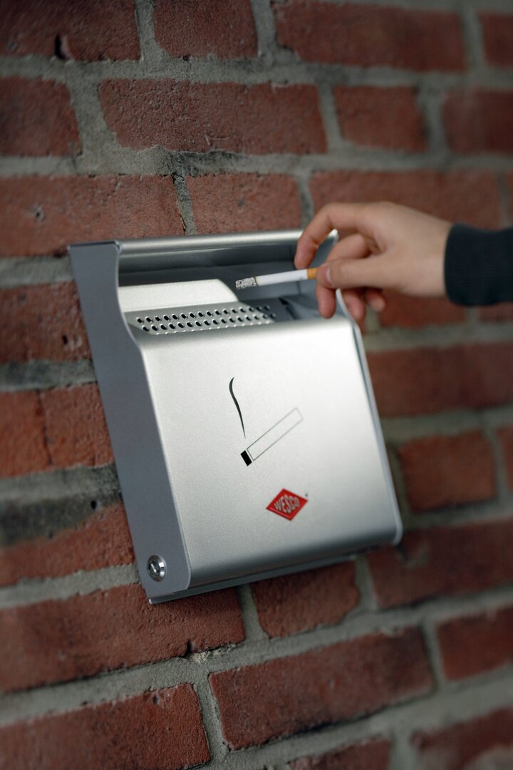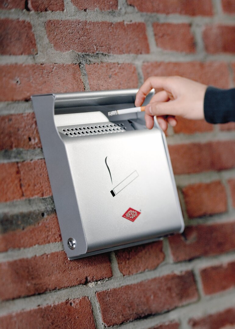 Wandascher aus hochwertig lackiertem Stahlblech im Briefkastenformat zur Wandmontage. Der Wandascher kann mit einem Dreikant-Schlüssel seitlich verriegelt werden und ist so besonders vandalismussicher. Fertig montiert. Outdoor geeignet.