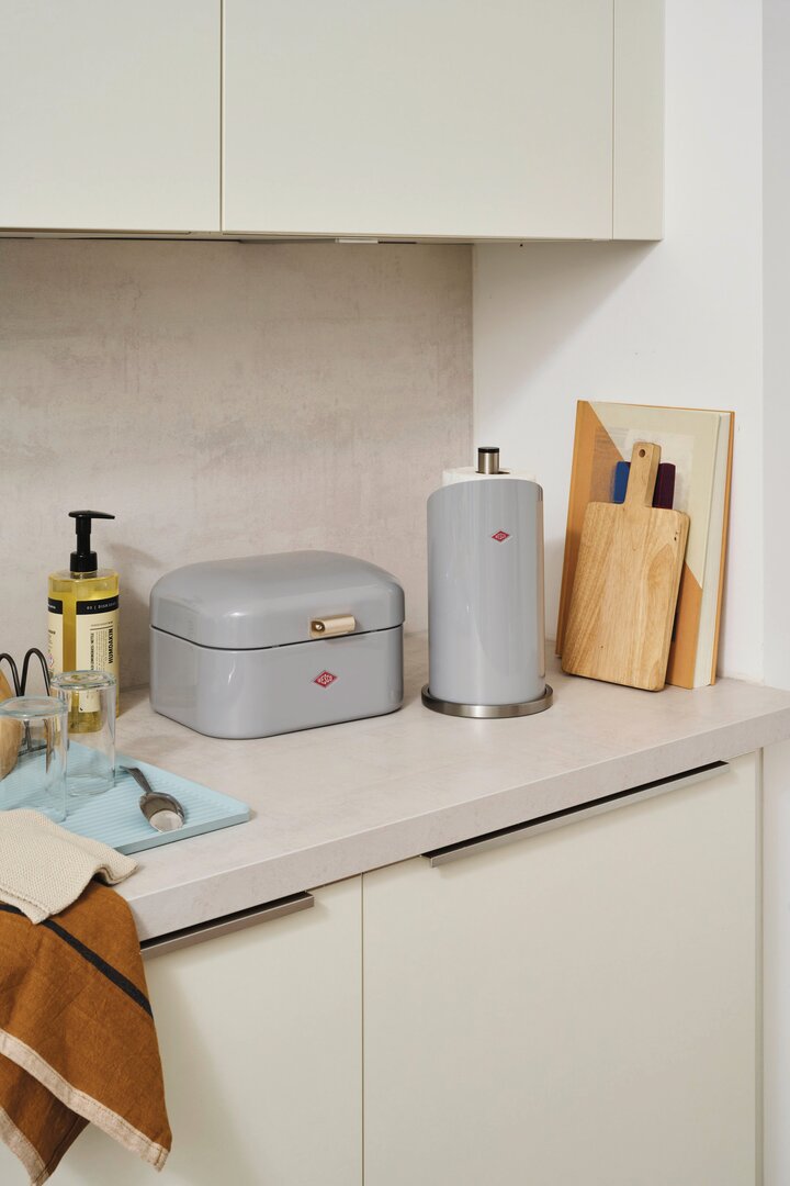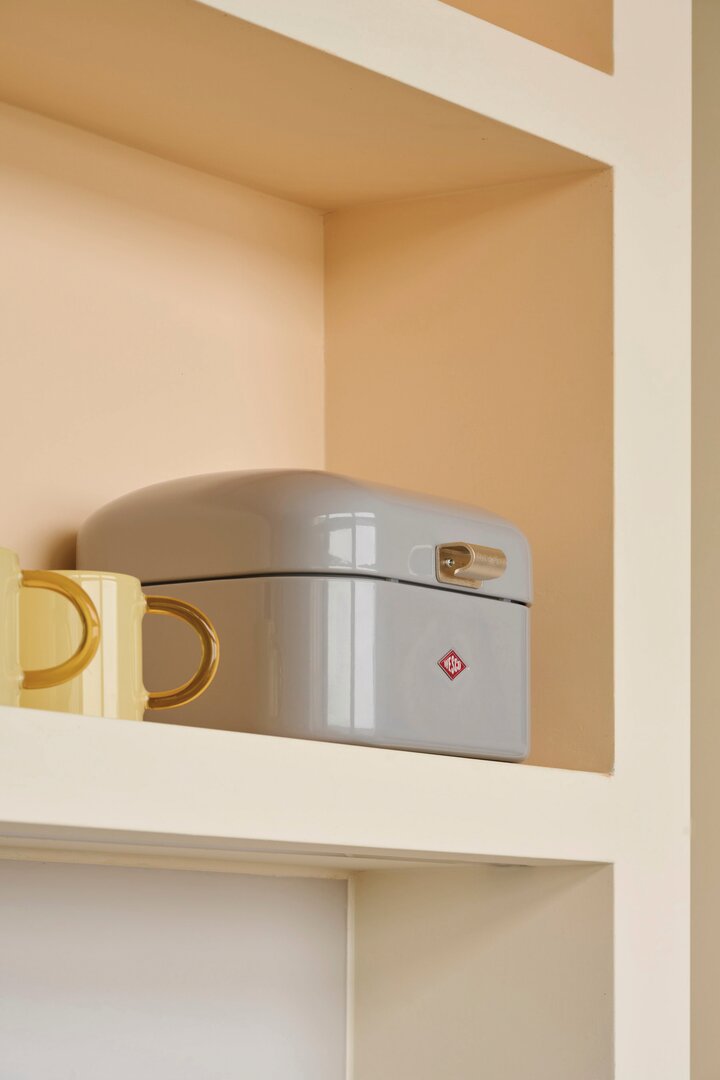 Gar kein Problem. Der Brotkasten Single Grandy® ist dank seiner Größe super für Küchen geeignet, in denen nicht viel Platz ist. In ihm kann ein kleineres Brot genauso gut hygienisch aufgehoben werden wie Brötchen, Gebäck oder Kuchen.Die Lüftungslöcher auf der Rückseite sorgen für eine optimale Luftzirkulation. So bleibt der Inhalt im Brotkasten länger frisch. Der Deckel ist mit stabilen Metallscharnieren am Unterteil befestigt.