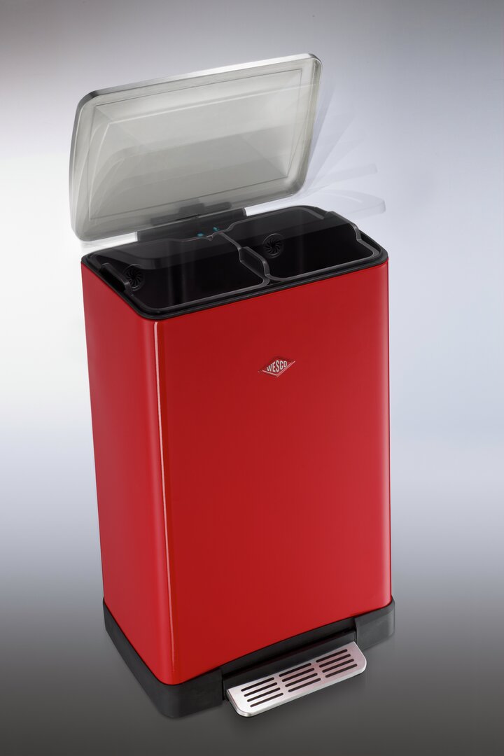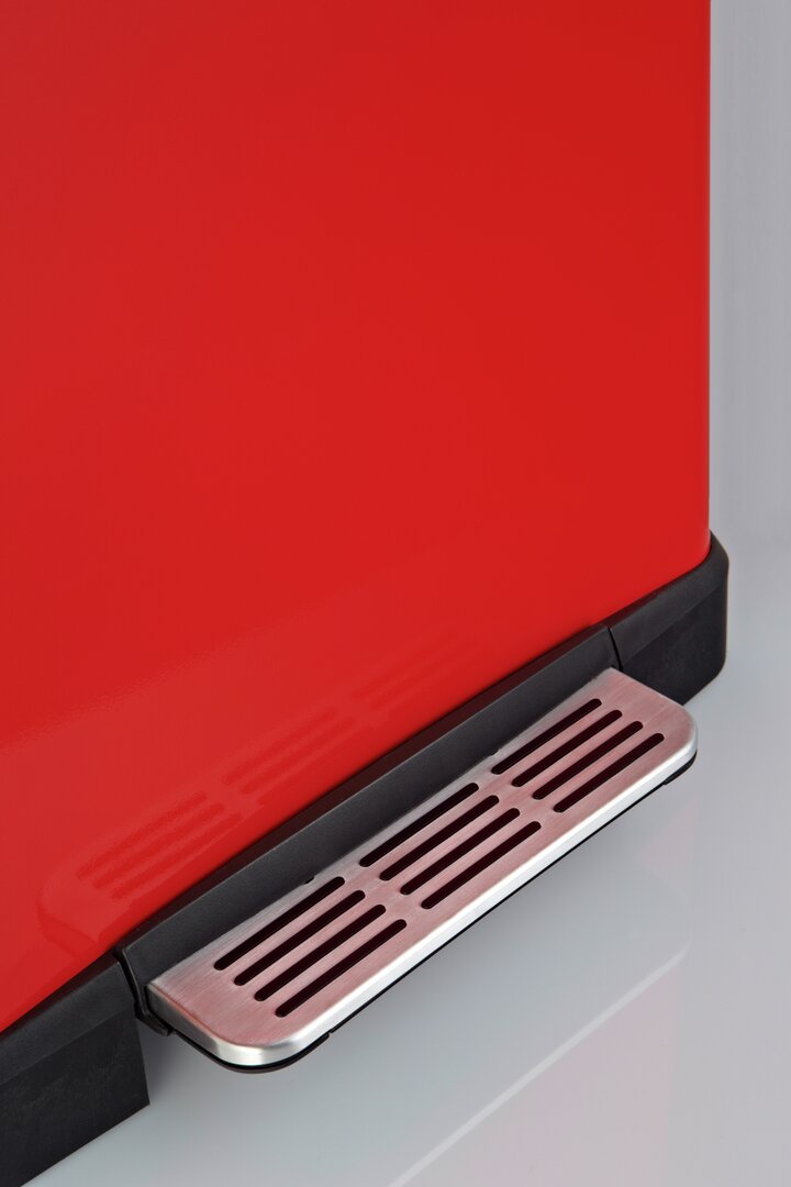 The pedal bin has two separate 18-litre inserts that you can fill as required with recyclables, paper, plastic or organic waste. The stainless steel lid closes almost silently thanks to a built-in damper and seals the waste securely. The lid can also be locked in the open position. A practical attachment option for bin bags on the plastic inserts prevents the bag from slipping out so that nothing can spill. The generous stainless steel foot pedal guarantees easy operation and free hands for convenient waste disposal. The Big Double Boy is a great waste separation system with a stylish look.