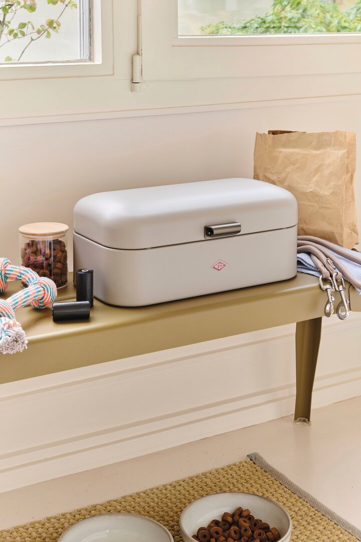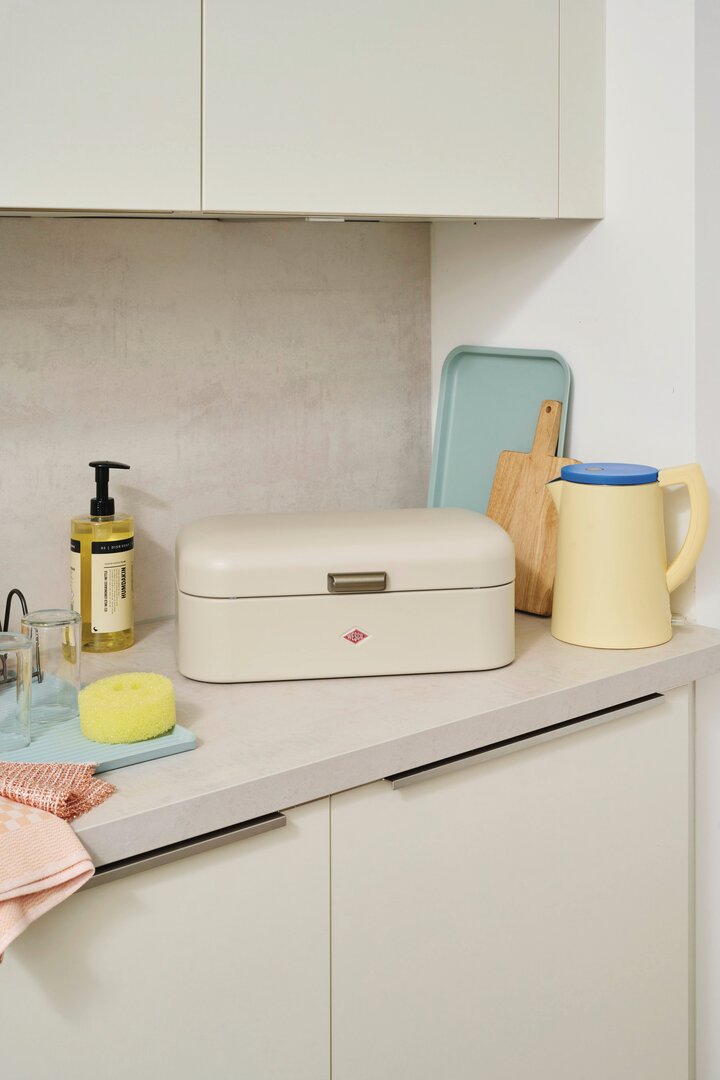 The Grandy® Medium bread bin is an absolute classic from Wesco. The name Grandy® Medium is derived from the English word "Grandma", as many people remember the shape of the box from their grandmother's kitchen. The Grandy® Medium is therefore an absolute retro treasure, but with its clean lines it is also a modern decorative piece for the kitchen.