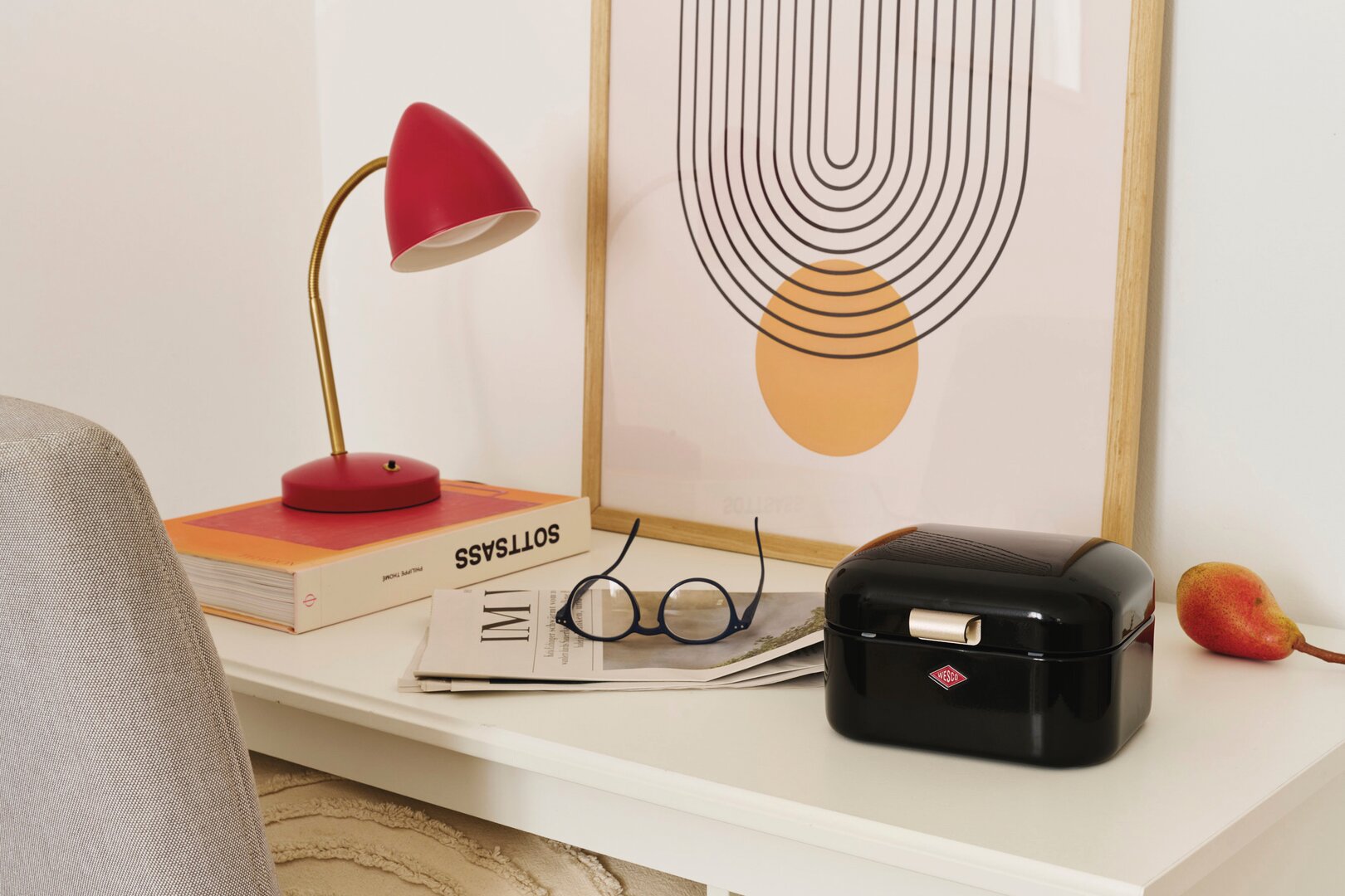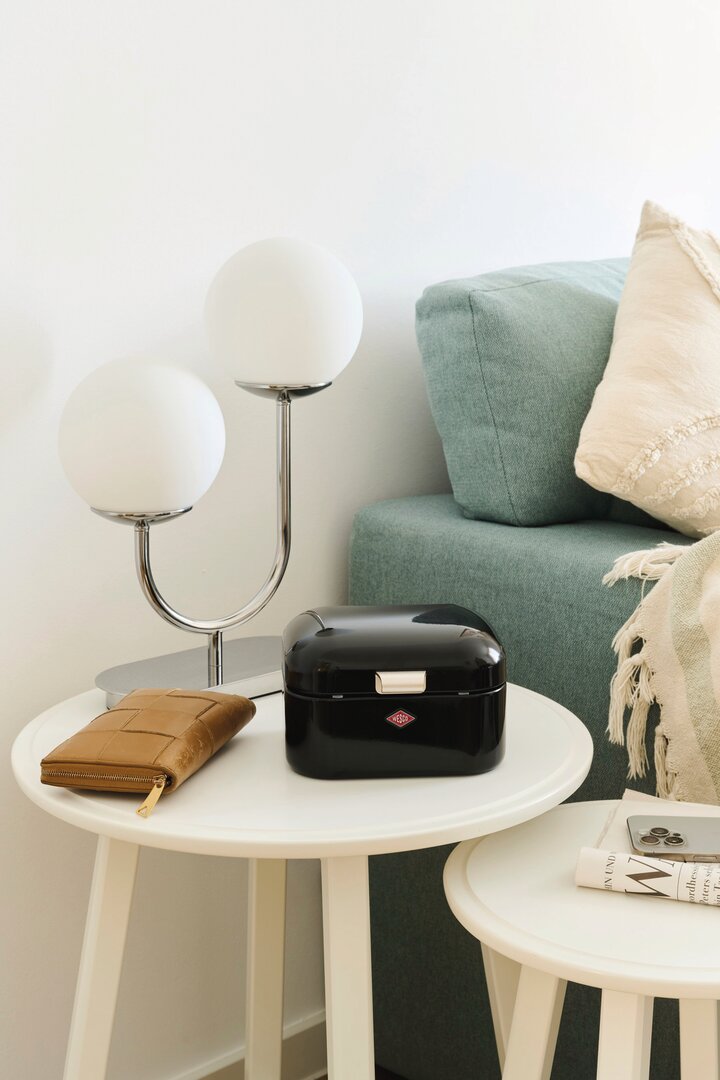 Thanks to its ventilation holes at the back, the Mini Grandy® can even be used as a biscuit tin. Sturdy metal hinges and the metal handle make the small box indestructible. The storage box in classic retro style is available in many bright Wesco colours.