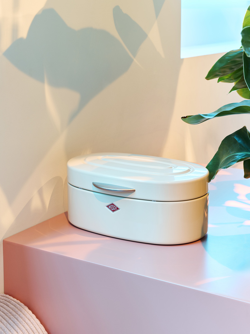 Simply beautiful. The Single Elly® bread bin is a real retro gem, with its oval shape and decorative embossing on the lid reminiscent of bread bins from the 1950s. The bread box is particularly suitable for smaller households, as it does not take up much space on the worktop with a footprint of 32 x 19 cm. Bread, rolls, pastries or cakes can be stored hygienically in the Single Elly®. Ventilation holes on the back of the bread tin ensure good air circulation.